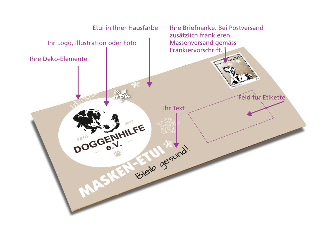 Oder bevorzugen Sie eine eigene Illustration? Möchten Sie ein Masken-Etui mit Ihrem Logo und eigenen Fotos?